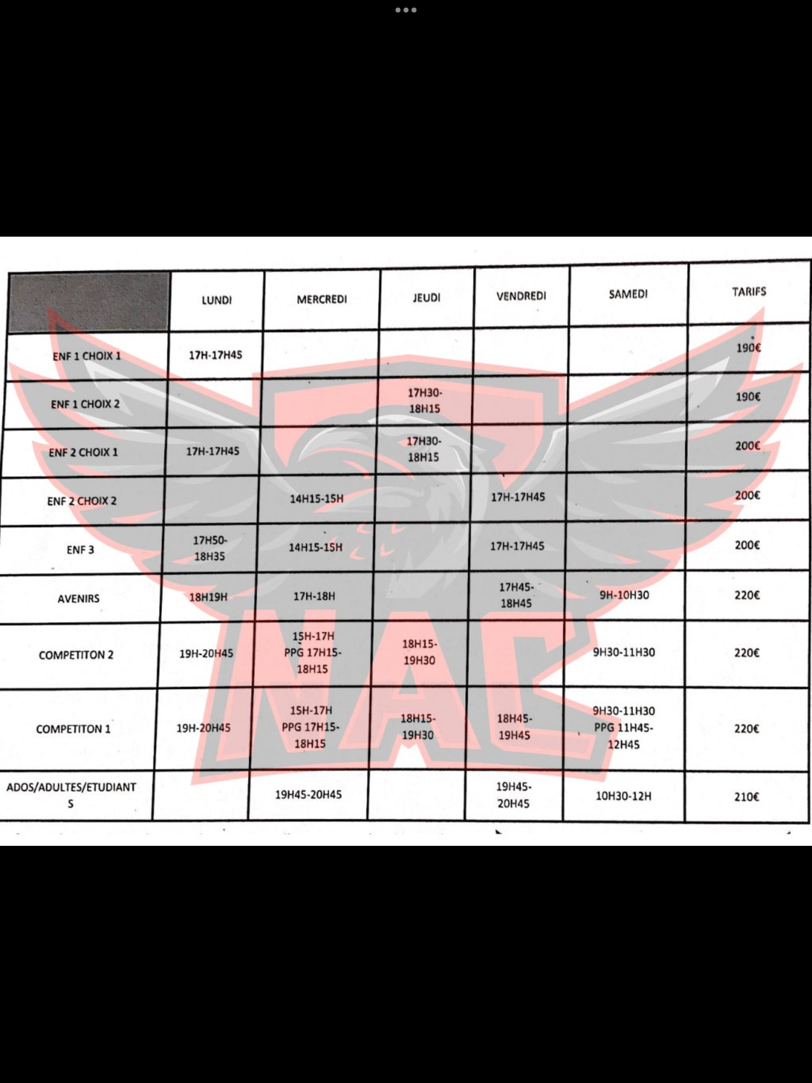Créneaux 2023-2024