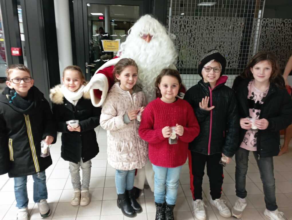 Ce soir le club avait invité le père noël a venir rencontrer nos jeunes nageurs de l école de natation . Pour L occasion le père noël leurs a remis à tous un petit cadeau offert par la boulangerie pâtisserie Sébastien Martin.